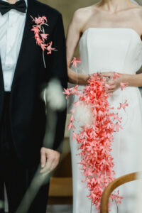 まるでひとつの作品のような、芸術的なブーケ。(結婚式はリアルだから作品、という言葉はあまり好きではないのですが、それ以上に適切な言葉が見つからず、、今回はストレートに書かせて頂いています)